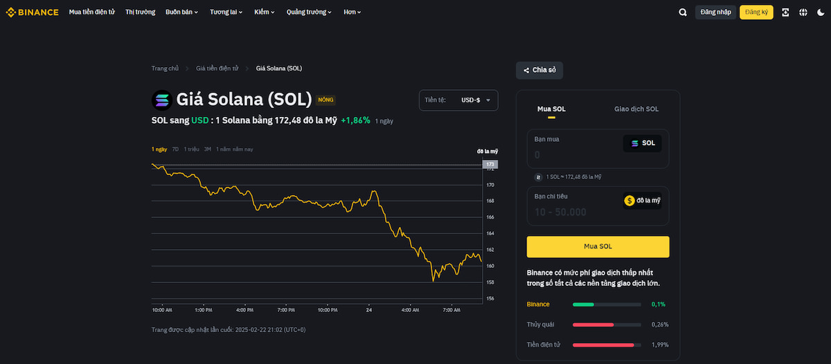 Phí mua Solana bằng các phương thức khác nhau là bao nhiêu?