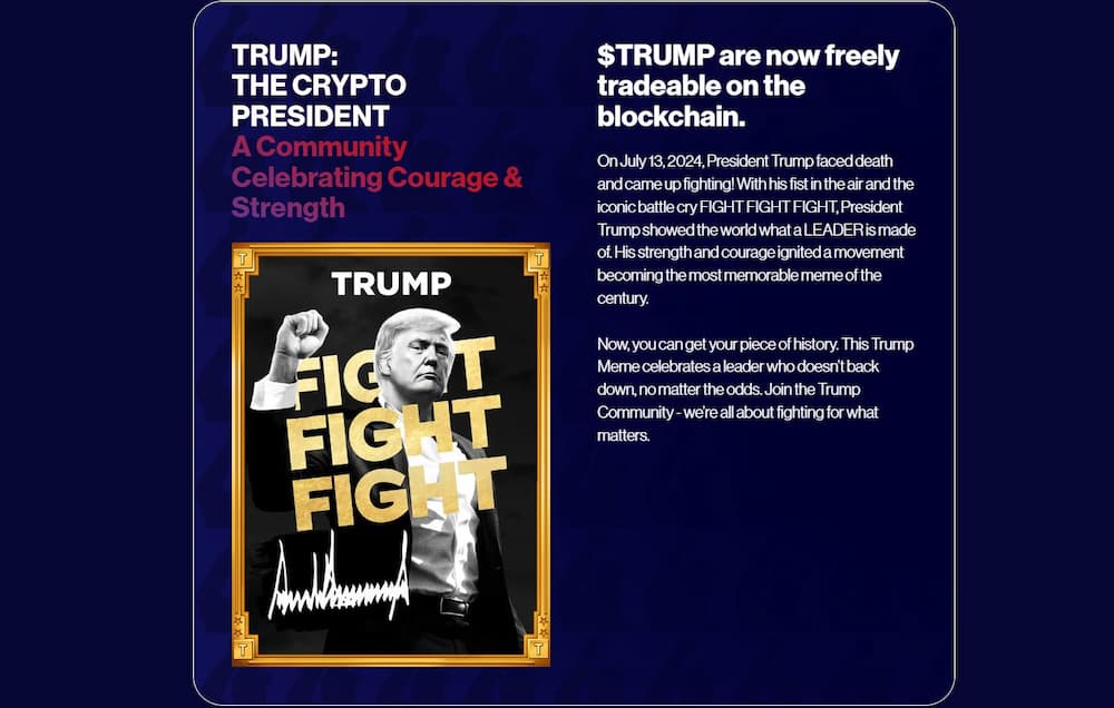 Meme coin này lấy hình ảnh chân dung của chính vị tổng thống Mỹ Donald Trump – đang chảy máu từ tai phải, nắm chặt tay và hét lớn “chiến đấu, chiến đấu, chiến đấu”. Bức ảnh mang tính biểu tượng này được chụp vào ngày 13 tháng 7 năm 2024, khi tỷ phú này bị ám sát khi đang thực hiện cuộc vận động ở Pennsylvania trong cuộc đua tranh cử.