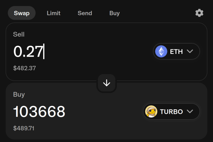 To buy Turbo, head to a decentralized exchange (DEX) like Uniswap where Turbo is available. On the DEX platform, you’ll need to paste Turbo’s contract address to find the token.