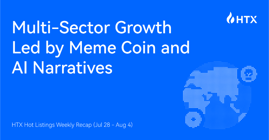 From July 28 to August 4, the global crypto market remained volatile, with investor focus rapidly shifting across narratives. During this period, HTX, a leading global crypto exchange, listed new assets across multiple sectors, led by meme coins and emerging tech themes such as AI, ZKP, cross-chain infrastructure, and RWA. HTX reinforces the platform’s ability to identify early-stage opportunities and help users navigate the new market cycle.