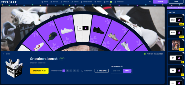 HypeLoot positions itself as a secure and transparent mystery box platform by using a provably fair system—while this isn’t unique, per se, it is one of its advertised standout features.