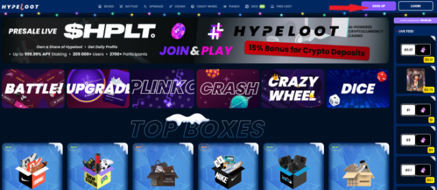 Head to hypeloot.com and click the “Sign Up” button in the top-right corner. You can register with an email and password or connect through a social account for faster access.