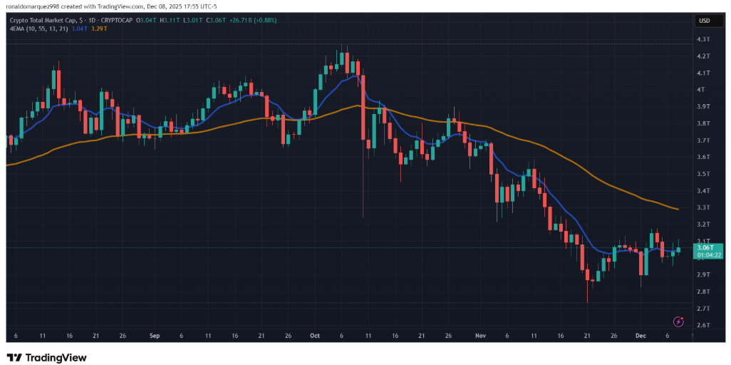 Nonostante queste tensioni, il sentiment resta moderatamente positivo. L’analista MartyParty ha segnalato il 4 dicembre che il disegno di legge bipartisan sulla struttura del mercato crypto sta guadagnando trazione al Congresso.