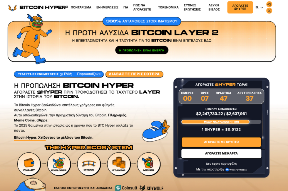 Καθώς η Metaplanet και άλλοι θεσμικοί κολοσσοί επιταχύνουν τη συσσώρευση Bitcoin, οι αδυναμίες του δικτύου, όπως τα υψηλά τέλη, οι αργές συναλλαγές και η περιορισμένη λειτουργικότητα, γίνονται όλο και πιο εμφανείς. Αυτό το κενό έρχεται να καλύψει το Bitcoin Hyper ($HYPER), μια καινοτόμα Layer 2 αρχιτεκτονική που φιλοδοξεί να κάνει το δίκτυο πιο γρήγορο, φθηνότερο και ευέλικτο. Βασισμένο στην Solana Virtual Machine (SVM), το Hyper υπόσχεται έξυπνα συμβόλαια και real-time dApps, ενώ μέσω του Canonical Bridge οι χρήστες θα μπορούν να μεταφέρουν $BTC μεταξύ Layer 1 και Layer 2, να δημιουργούν wrapped Bitcoin και να τα αξιοποιούν σε DeFi, NFTs και gaming.