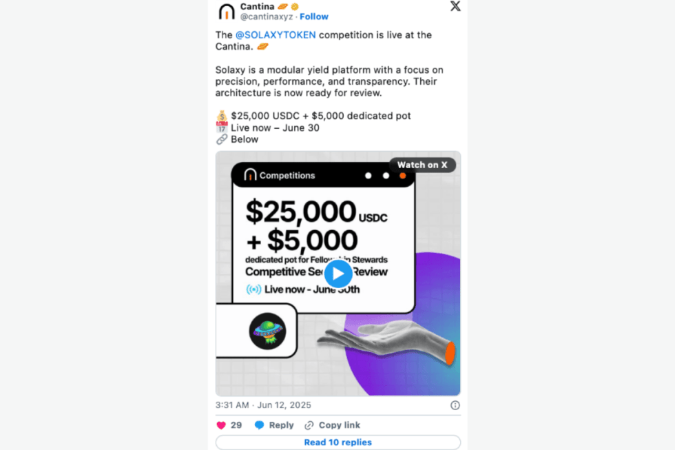 Για να ενισχύσει τη σταθερότητα του συστήματος, η ομάδα ξεκίνησε και bug bounty $25.000 μέσω του Cantina, ανταμείβοντας όσους εντοπίσουν κρίσιμες ευπάθειες.