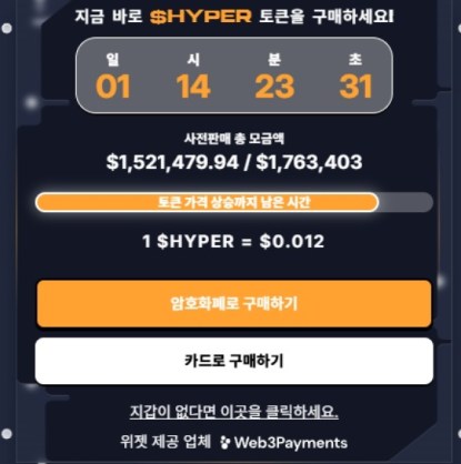 $HYPER는 프리세일을 통해 150만 달러 이상 모금했다. 현재 토큰당 단 0.011975달러에 HYPER 토큰을 구매할 수 있다.