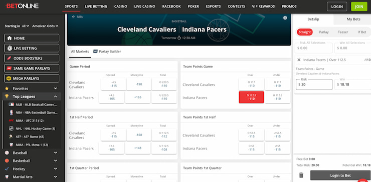 BetOnline offers Indiana bettors daily action on NFL, NBA, college games, plus niche picks like golf betting, darts, and table tennis. You will find props, parlays, teasers, and same-game combo parlays across major leagues, plus custom lines on player performance. In addition, live betting comes with modern graphical displays and/or select live-streaming.