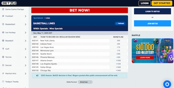 BetUS heavily invests in futures, college titles, player awards, and division races, which are posted earlier than most betting sites. It also offers props across multiple categories, with daily same-game combos available for the NFL, NBA, and international soccer.