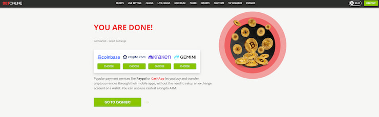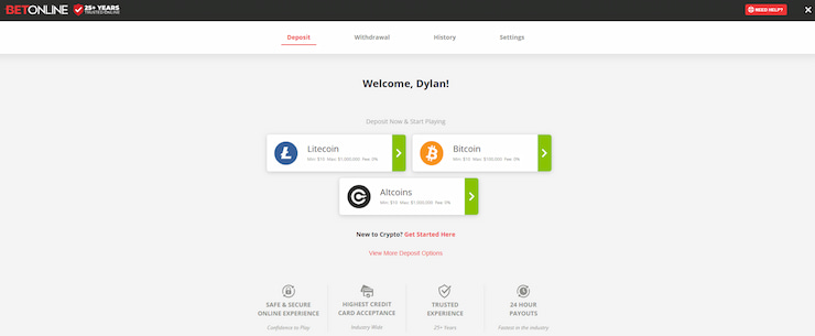 BetOnline supports fast crypto payments, including Bitcoin, Solana, and even meme coins—no ID checks or extra steps required. Card deposits are available too, but non-crypto options like money orders have higher minimums and longer processing times.
