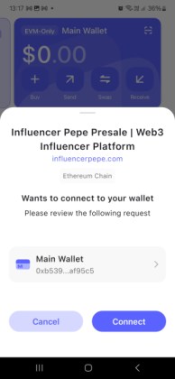 Before connecting, double-check that you’re on the official Influencer Pepe site to avoid scams. Once confirmed, tap or click the ‘Connect Wallet’ option on the website. Select your wallet.