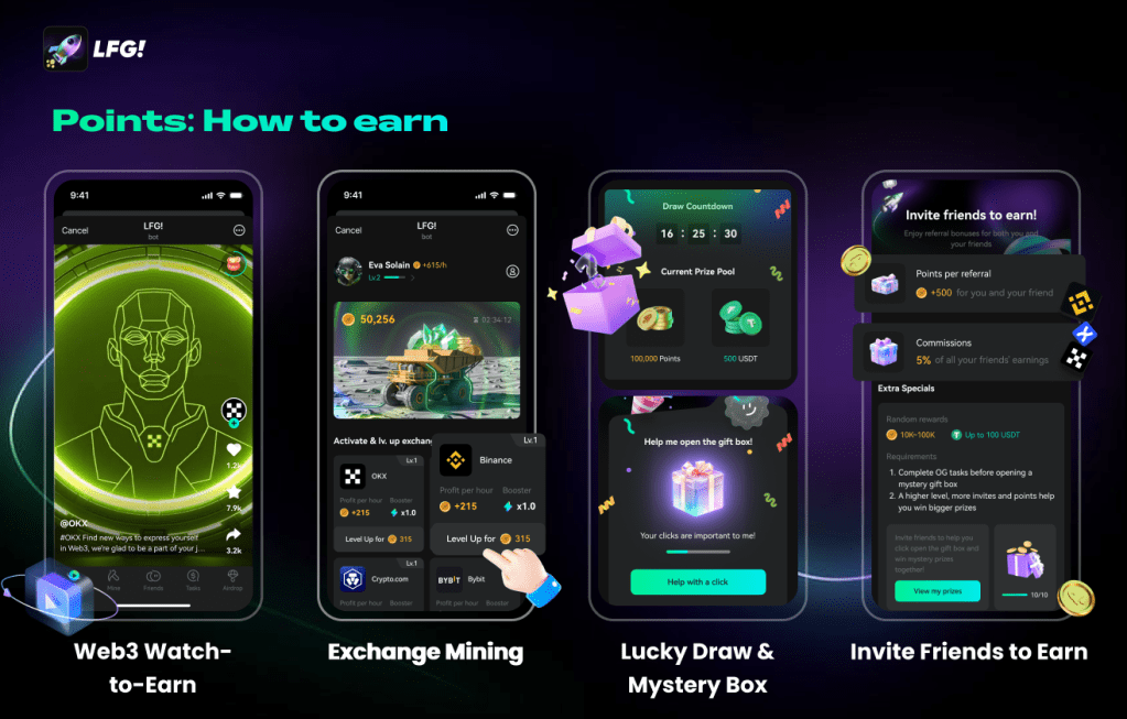 3. Social Growth: Invite friends to join LFG! and earn commissions from their in-app activities, fostering a collaborative growth journey in the Web3 space.