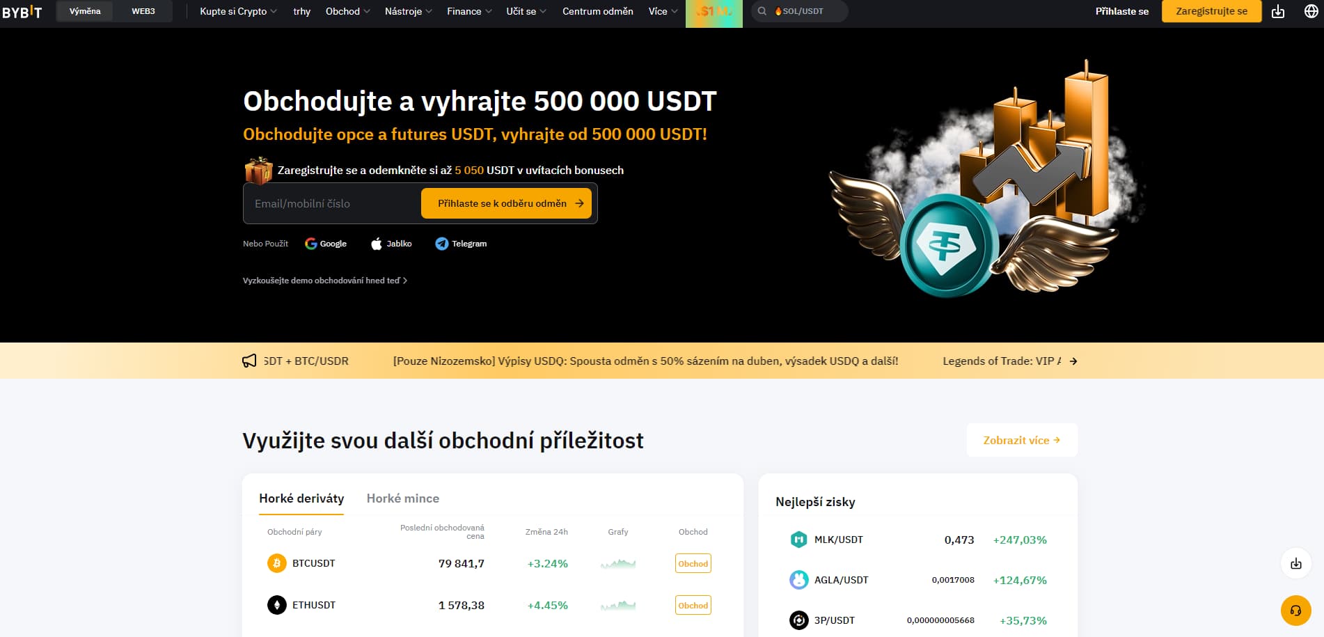 - Staking, futures, směnárna, NFT tržiště – vše na jednom místě