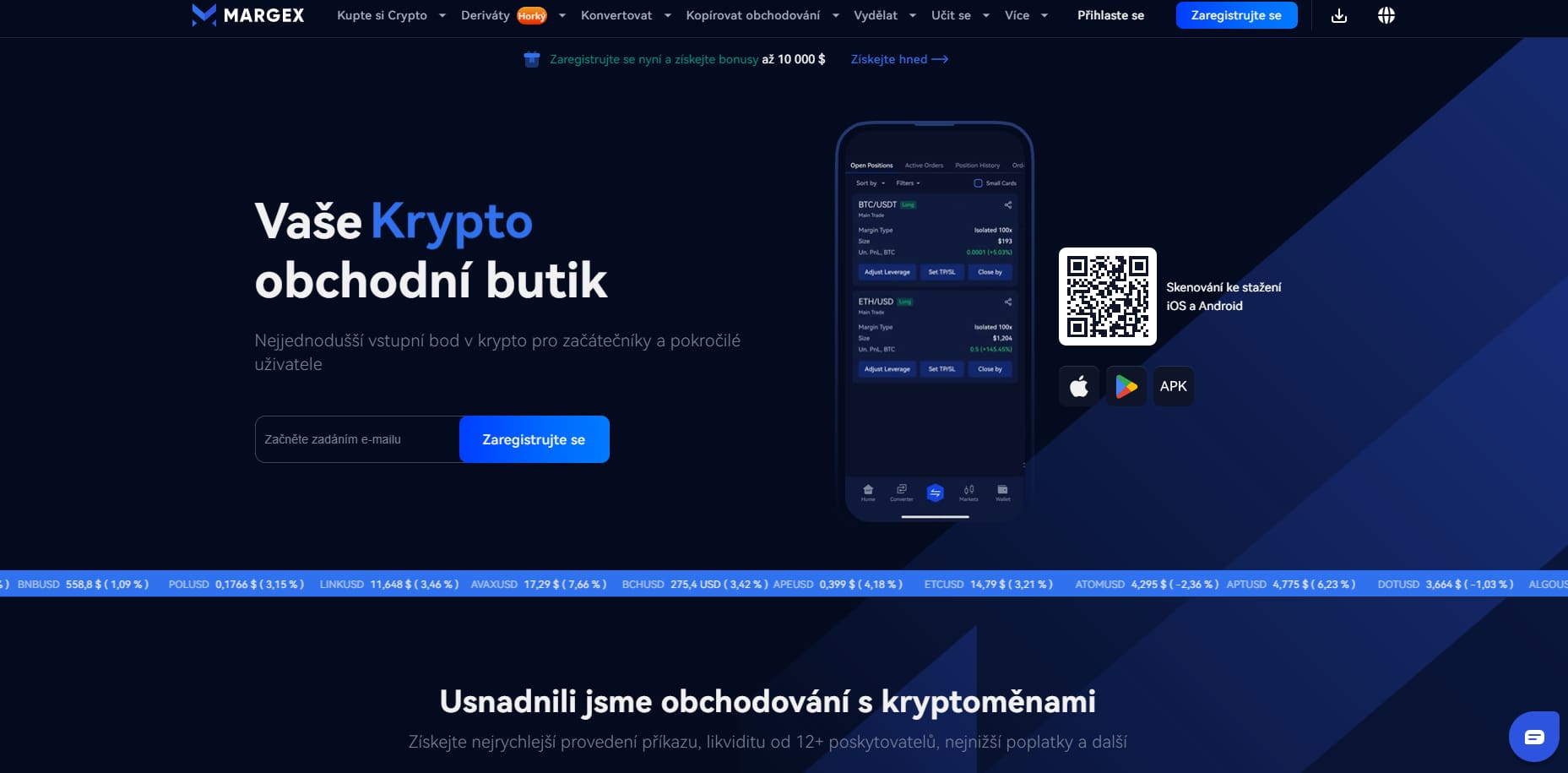 - Margex – Futures burza s až 100x pákou, zaměřená na zkušenější uživatele, kteří již vlastní kryptoměny.