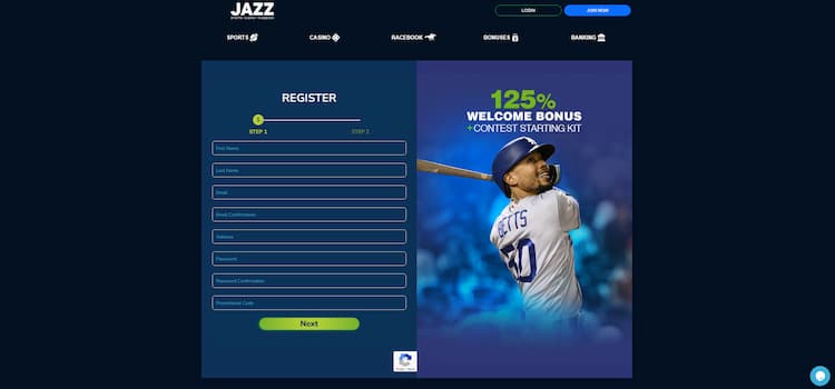 Jazz Sportsbook login and registration, though requiring a two-step process, is relatively easy and straightforward. All you have to do is enter your name, email address, phone number, address, and date of birth. You may also type in a promotion code or referral account if any applies, then click ‘Sign Me Up’ to complete this process.