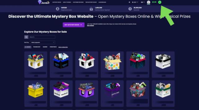 JemLit sports a sleek black and purple design that’s bold and easy to navigate. The navigation bar at the top of the homepage provides seamless access to key areas, such as how the platform works, customer reviews, free mystery boxes, and the leaderboard.