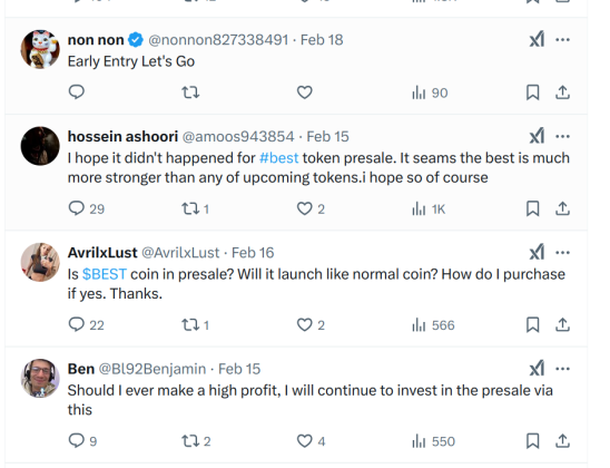 Общността на Best Wallet е впечатляваща: 63K последователи в X (Twitter) и почти 44.8K абонати в Telegram. Наблюдаваме много органична активност от поддръжници и инвеститори, които проявяват интерес към закупуване.