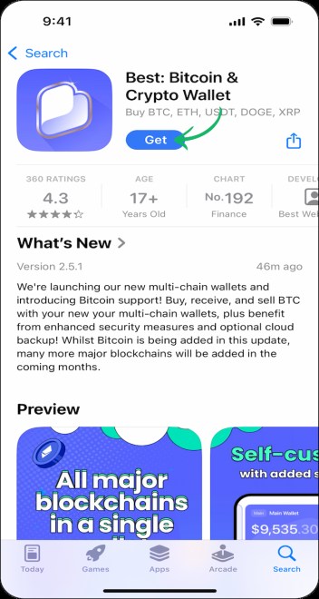 Ako se pitate kako početi sa kriptovalutama, prvi korak je preuzimanje i instalacija pouzdane aplikacije za kripto novčanik. Jedan od najpreporučenijih izbora je Best Wallet. Preuzmite aplikaciju sa zvanične stranice ili iz trgovine aplikacija na vašem uređaju i instalirajte je.