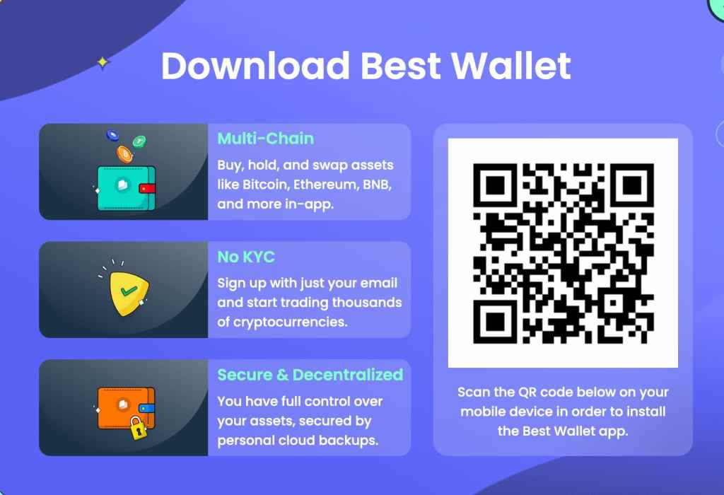 Prvi korak pri nakupu XRP je ustvarjanje brezplačne denarnice na Best Wallet, ki uporabniku ponuja zanesljivo in uporabniku prijazno izkušnjo. Gre za intuitivno mobilno aplikacijo, ki omogoča varen dostop do vaših sredstev.