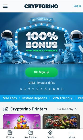Jako kasyno bez konta bankowego, Cryptorino umożliwia natychmiastową grę – wystarczy e-mail i hasło. Obsługuje Bitcoin, Ethereum, USDT i inne kryptowaluty, zapewniając błyskawiczne, bezpieczne wypłaty.