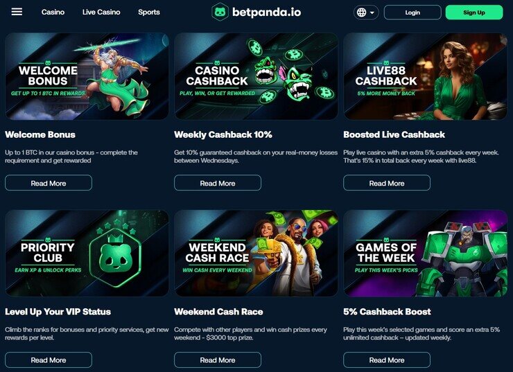 - Betpanda – легальное казино с быстрыми выплатами и мгновенными депозитами, которое предлагает 10% кэшбэк каждую неделю;
