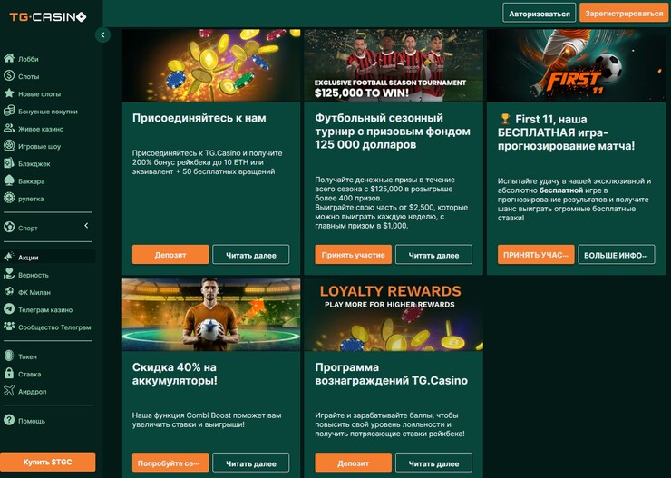- TG Casino – передовая платформа с современными играми, которая работает внутри мессенджера Telegram;