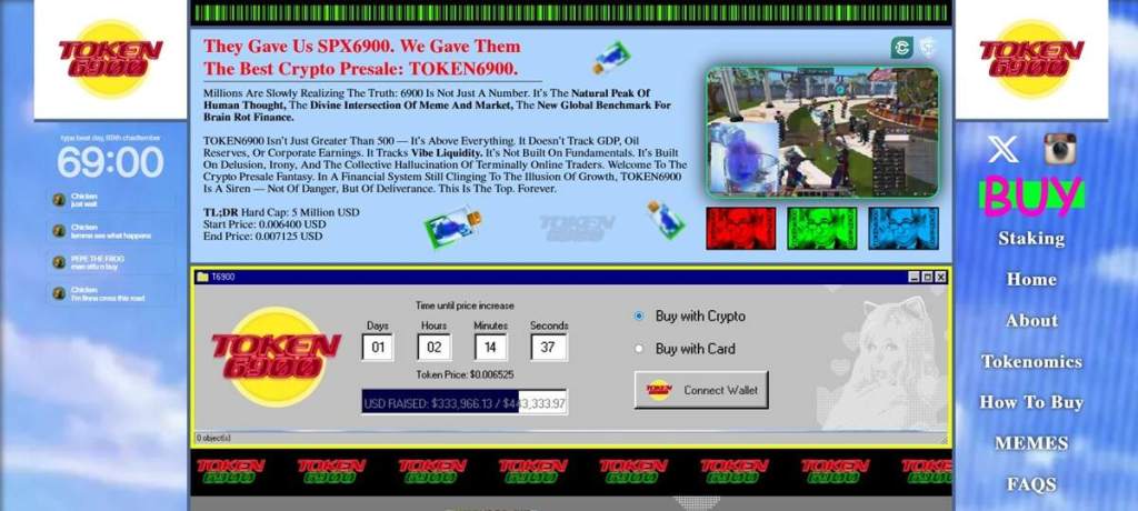 TOKEN6900 se nalazi u ranoj fazi presalea, a već je privukao značajnu pažnju medija i kripto analitičara. Investitori su prepoznali njegov potencijal za visoku kratkoročnu dobit, posebno u kontekstu rastuće popularnosti tokena poput SPX6900. Ukoliko ciljate agresivne investicione prilike, ovaj projekat bi mogao biti vaš ulazak u viralni kripto prostor.