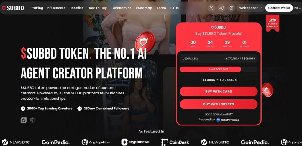 Za sve koji istražuju koje kriptovalute kupiti iz domena creator economy i AI integracije, Subbd ($SUBBD) predstavlja jedan od najzanimljivijih novih projekata. Ovaj token je osmišljen za decentralizovanu platformu koja povezuje kreatore sadržaja sa publikom koristeći AI alate, monetizaciju i direktno plaćanje putem blockchain‑a. Subbd ukida posrednike i omogućava kreatorima da naplate pristup svojim sadržajima uz veću kontrolu i profit.