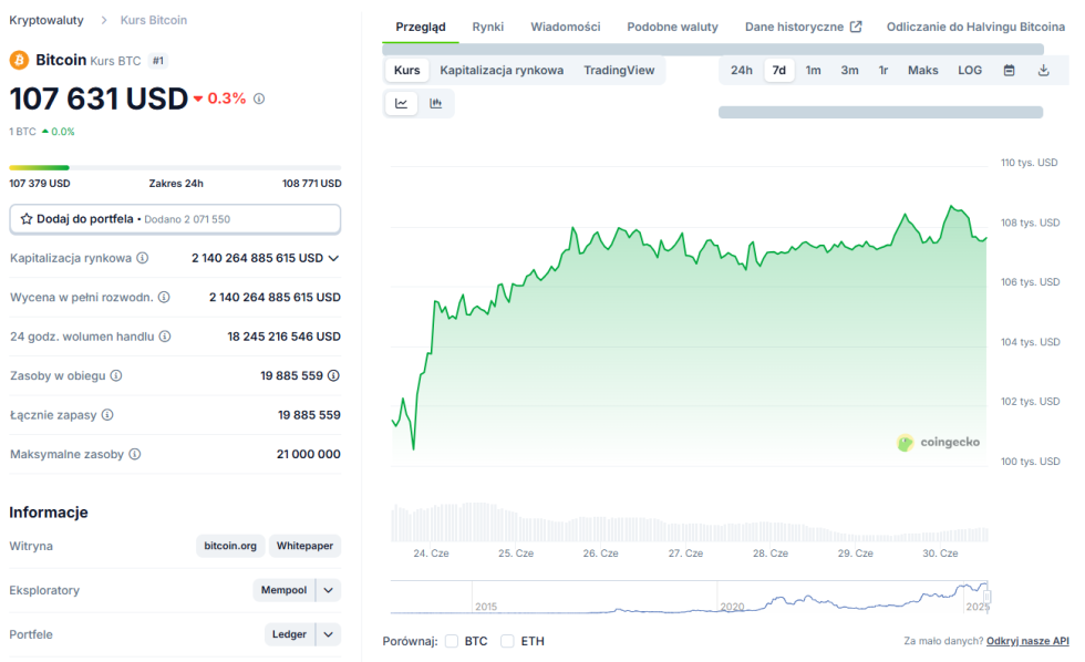 Bitcoin stabilnie trzyma się pułapu 107 000 USD