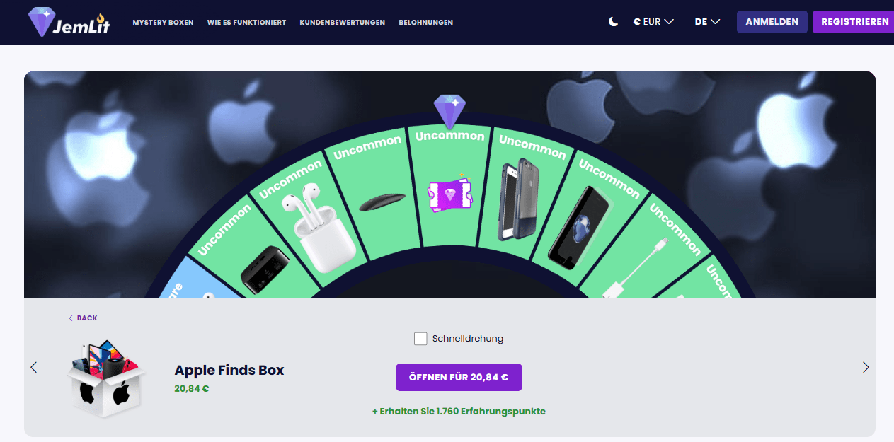Iphone, Airpods und Co am Glücksrad, Quelle: https://jemlit.com/de/box/apple-ebox