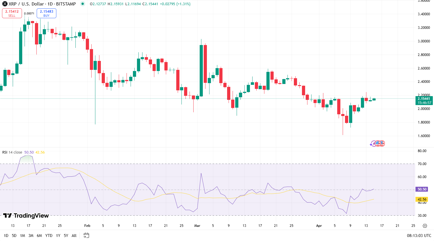 Sejak menyentuh level terendah terbaru di sekitar $1,80, harga $XRP telah melonjak hingga $2,15 atau setara kenaikan sebesar 19,44%. Kenaikan ini mencerminkan adanya sentimen optimistis dari pelaku pasar.