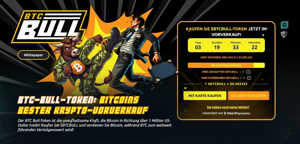 $BTCBULL ist ein neuer Meme Coin, der nicht nur an Bitcoin angelehnt ist, sondern Investoren auch ermöglicht, direkt von der Bitcoin-Kursentwicklung zu profitieren. Das Projekt hat nämlich verschiedene Ereignisse geplant, wenn der Bitcoin-Kurs gewisse Marken erreicht. So werden zum Beispiel $BTCBULL-Token geburnt, wenn der Bitcion-Kurs auf 125.000 Dollar steigt. Steigt der Kurs auf 150.000 Dollar, erhalten $BTCBULL-Halter sogar echte Bitcoin per Airdrop. Je mehr $BTCBULL man hält, desto mehr Bitcoin-Anteile bekommt man.