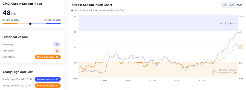 Die Altcoin-Season könnte dabei gerade erst am Beginn stehen. Im Altcoin-Season-Index wird gerade nur ein Wert von 46 von 100 Punkten erreicht, und das Markt-Sentiment im Fear-and-Greed-Index liegt heute lediglich bei 67 von 100 Punkten.
