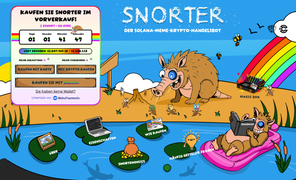 Bei SNORT handelt es sich um einen spannenden jungen Meme Coin, der sich heute noch ganz am Anfang seiner Entwicklung in der sogenannten Presale-Phase befindet. Das heißt, dass er noch nicht auf Krypto-Börsen gelistet ist und heute ausschließlich über die offizielle Webseite des dahinter stehenden Projektes Snorter gekauft werden kann.