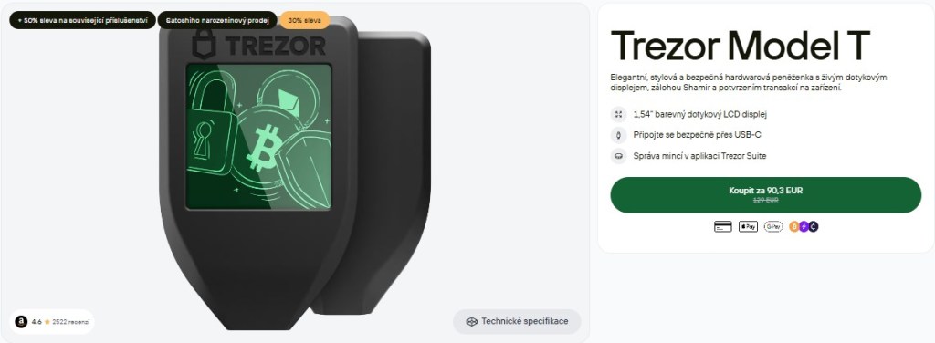 | Trezor Model T | 189 EUR | Ano | Ano |