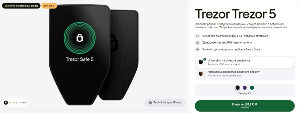 Na oficiální webové stránce SatoshiLabs najdete nejen nové modely Trezoru. Zde získáte i garantovanou podporu a aktualizace softwaru. Jsou-li pro vás důležité osobní setkání nebo rychlá dostupnost, obraťte se na autorizované prodejce. Tyto obchody mohou nabízet konkurenční ceny a mít vlastní slevové akce.