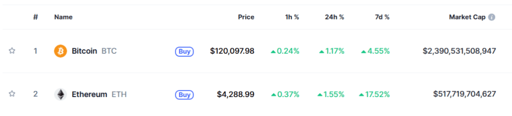 (Sowohl der Kurs von Bitcoin als auch der Ethereum-Kurs ist in den letzten Tagen stark angestiegen – Quelle: