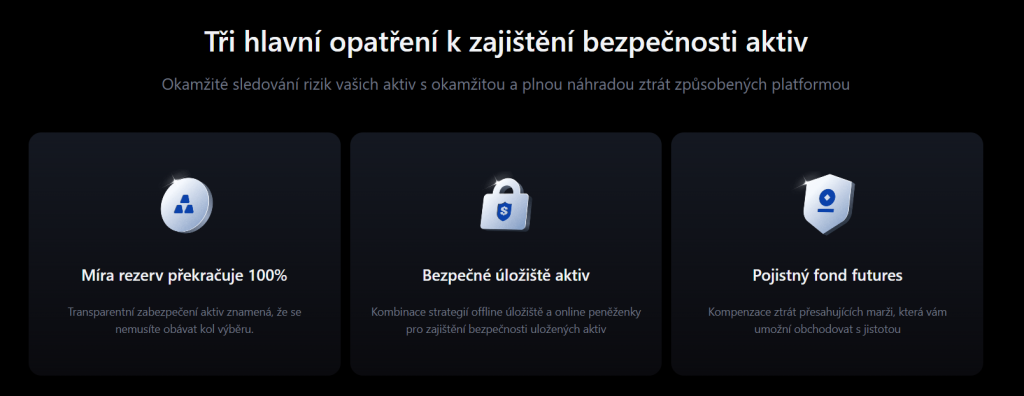 Bezpečnostní opatření na BingX zahrnují bankovní úroveň úschovy, pojištění aktiv a pravidelné audity třetími stranami, jako jsou Mazars a SlowMist. Platforma rovněž podporuje dvoufázové ověření (2FA) a whitelisty pro výběry, což zvyšuje ochranu uživatelských účtů. BingX nabízí i pasivní příjmové produkty, jako jsou úspory s flexibilními a pevnými termíny, staking a Shark Fin produkt, který poskytuje zajištěný výnos bez rizika ztráty kapitálu. Tyto funkce dělají BingX atraktivní volbou pro širokou skupinu kryptoměnových obchodníků.