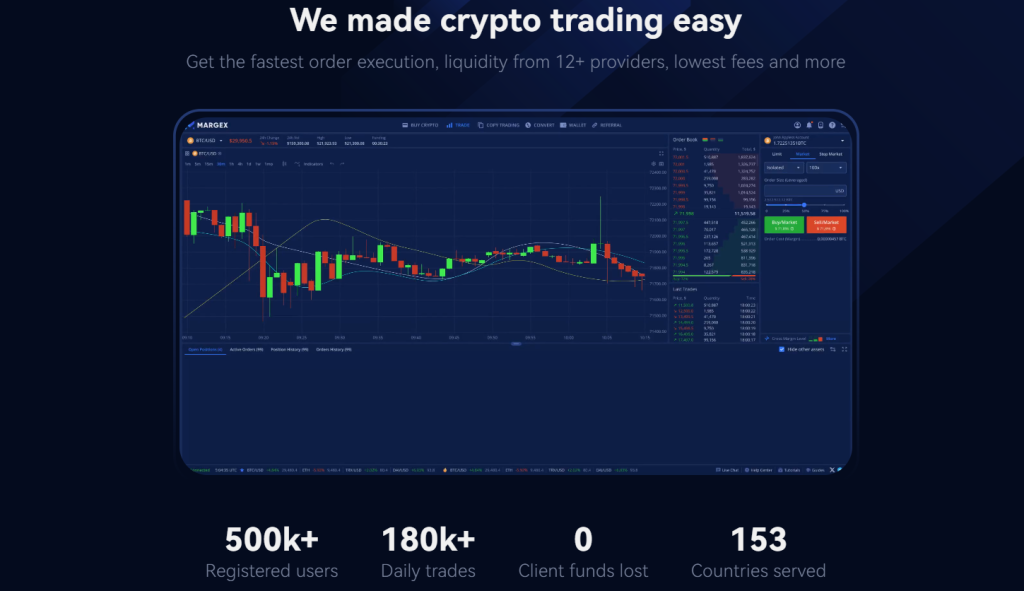 Margex je kryptoměnová burza, která se zaměřuje na poskytování uživatelsky přívětivé platformy pro obchodování s finanční pákou až 100× pro zajištění vyšších zisků při menších cenových pohybech. Pro ty, kteří preferují automatizované obchodování, platforma nabízí i možnost využití trading botů, což usnadňuje proces obchodování.
