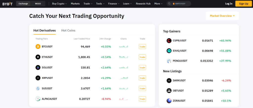 6. ByBit – Krypto burza, která cílí na obchodování s deriváty a Web3