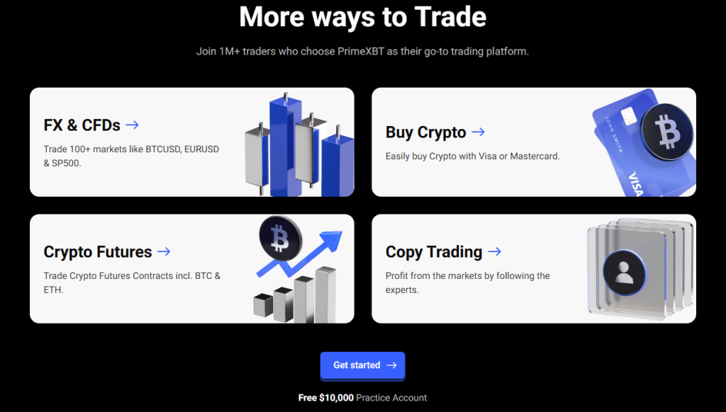 8. PrimeXBT – Burza umožňující funkce pro copy trading a crypto futures