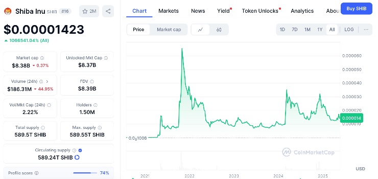 Shiba Inu odštartovala v auguste 2020 ako meme coin na sieti Ethereum. Za 165 dní stúpla z 0,00000000051 $ na 0,00000051 $. Vrchol dosiahla na 0,00008845 $ v tom istom roku. Virálny marketing, silná komunita a extrémne nízka cena spustili explozívny rast.