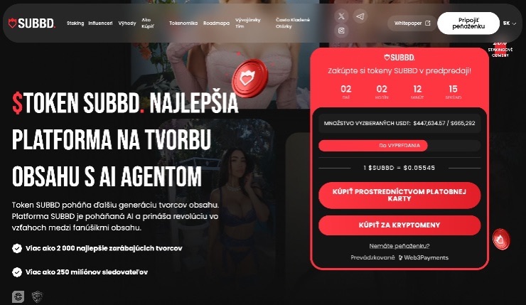 | SUBBD (SUBBD) | Perspektívna AI kryptomena s komunitnou platformou pre tvorbu kontentu |