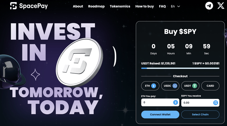 Projekt si už v predpredaji získal dôveru investorov, keď sa mu len za niekoľko týždňov podarilo vyzbierať vyše 1,1 milióna dolárov. SPY token, natívna kryptomena SpacePay, ponúka držiteľom prístup k hlasovacím právam a kvartálnym webinárom s vedením projektu. S celkovou zásobou 34 miliárd tokenov a 20 % určených na predpredaj má SPY ideálne predpoklady na prudký cenový nárast.