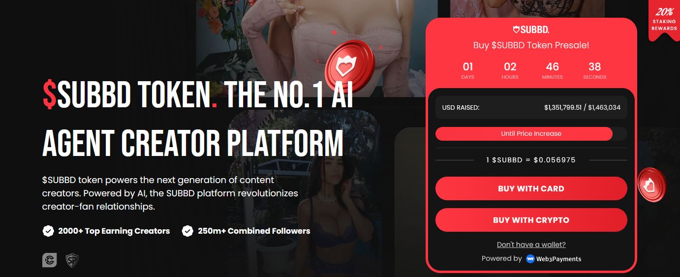 Mit 20 % Staking-APY und einem wachsenden Presale-Volumen – aktuell über 1,36 Millionen US-Doollar – gehört Subbd zu den billigen Coins mit Zukunft, die nicht auf Copy-Paste-Konzepte setzen, sondern die Creator Economy in Richtung Automatisierung und Ownership verschieben.