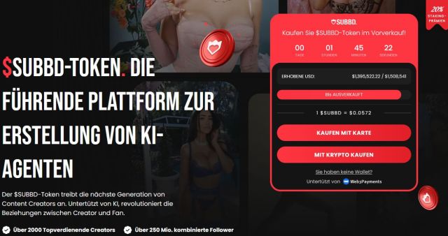 Mit 20 % Staking-APY und einem wachsenden Presale-Volumen – aktuell über 1,39 Millionen US-Doollar – gehört Subbd zu den billigen Coins mit Zukunft, die nicht auf Copy-Paste-Konzepte setzen, sondern die Creator Economy in Richtung Automatisierung und Ownership verschieben.