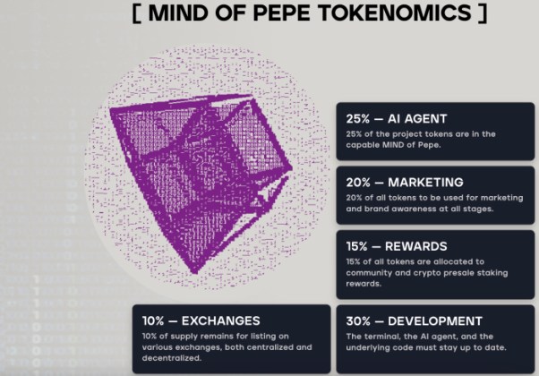 MIND of Pepe apvieno mēmu monētu pasauli un mākslīgo intelektu. Tas apvieno ikoniskā Pepe mēmu humoru ar modernām MI tehnoloģijām, cenšoties sekot $PEPE pēdās un vienlaikus darbojoties kā gudrs tirdzniecības asistents saviem īpašniekiem.