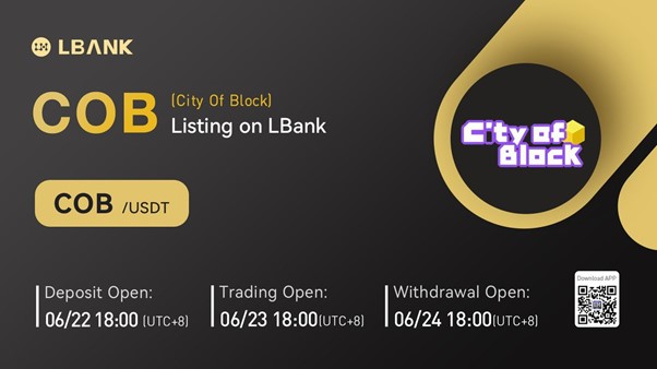 INTERNET CITY, DUBAI, Jun. 20, 2022 – LBank Exchange, a global digital asset trading platform, will list City Of Block (COB) on June 23, 2022. For all users of LBank Exchange, the COB/USDT trading pair will be officially available for trading at 18:00 (UTC+8) on June 23, 2022.