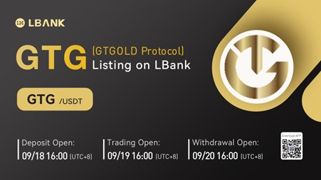 INTERNET CITY, DUBAI, Sep. 16, 2022 – LBank Exchange, a global digital asset trading platform, will list GTGOLD Protocol (GTG) on September 19, 2022. For all users of LBank Exchange, the GTG/USDT trading pair will be officially available for trading at 16:00 (UTC+8) on September 19, 2022.