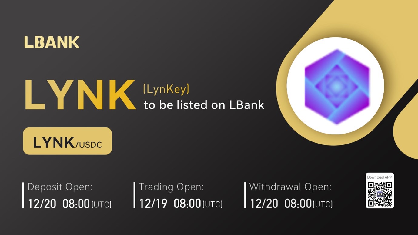 INTERNET CITY, DUBAI, Dec. 16, 2022 – LBank Exchange, a global digital asset trading platform, will list LynKey (LYNK) on December 19, 2022. For all users of LBank Exchange, the LYNK/USDT trading pair will be officially available for trading at 8:00 (UTC) on December 19, 2022.