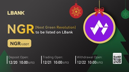INTERNET CITY, DUBAI, Nov. 19, 2022 – LBank Exchange, a global digital asset trading platform, will list Next Green Revolution (NGR) on November 21, 2022. For all users of LBank Exchange, the NGR/USDT trading pair will be officially available for trading at 10:00 UTC on November 21, 2022.